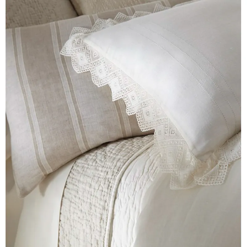 Three rows of hem stitch run along the foot of the bed and side of each sham for additional subtle detail.