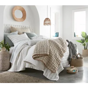 The Claudia collection is a tactile masterpiece that redefines comfort with a touch of modern flair. This quilt features a captivating grid of pillowy blocks, meticulously crafted from the softest cotton. Each block serves as a miniature oasis, inviting you to sink into a world of plush serenity.